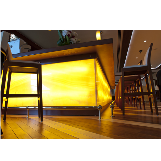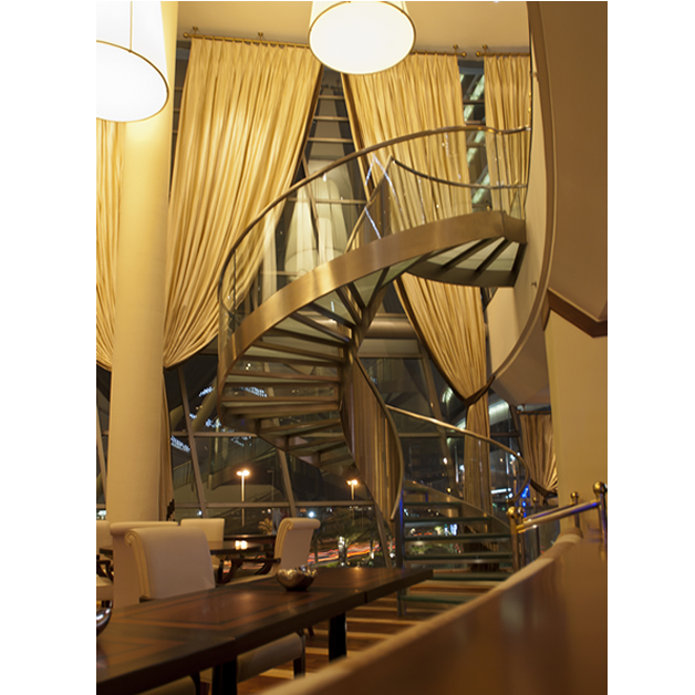 Bice Bahréin inmerso en un edificio de cristal semejando un barco, ante la inmensidad del Golfo Arabigo envuelto por el azul del cielo, dio por resultado un restaurant único e inigualable en todo el mundo. En el diseño ultra moderno, minimalista contemporáneo, se incluyeron detalles que evocan la exuberancia del pasado, como las colosales cortinas de seda de 9 mts de altura. La escalera de acero pulido y cristal en espiral que lleva al huésped del restaurant al exclusivo lounge, donde los clientes pueden saborear los frutos de la vid y fumar los más deliciosos puros. Los confortables muebles invitan a permanecer a los clientes ahí. Los exhibidores de los puros, hechos exclusivos para el cliente con finas maderas de caoba y ensamblados a mano.
